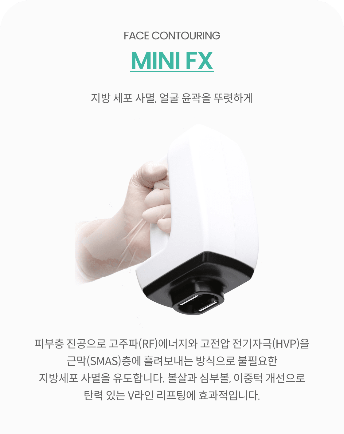 RF(고주파 에너지)와 진공처리에 HVP가 더해져 효과적인 지방감소를 기대할 수 있습니다