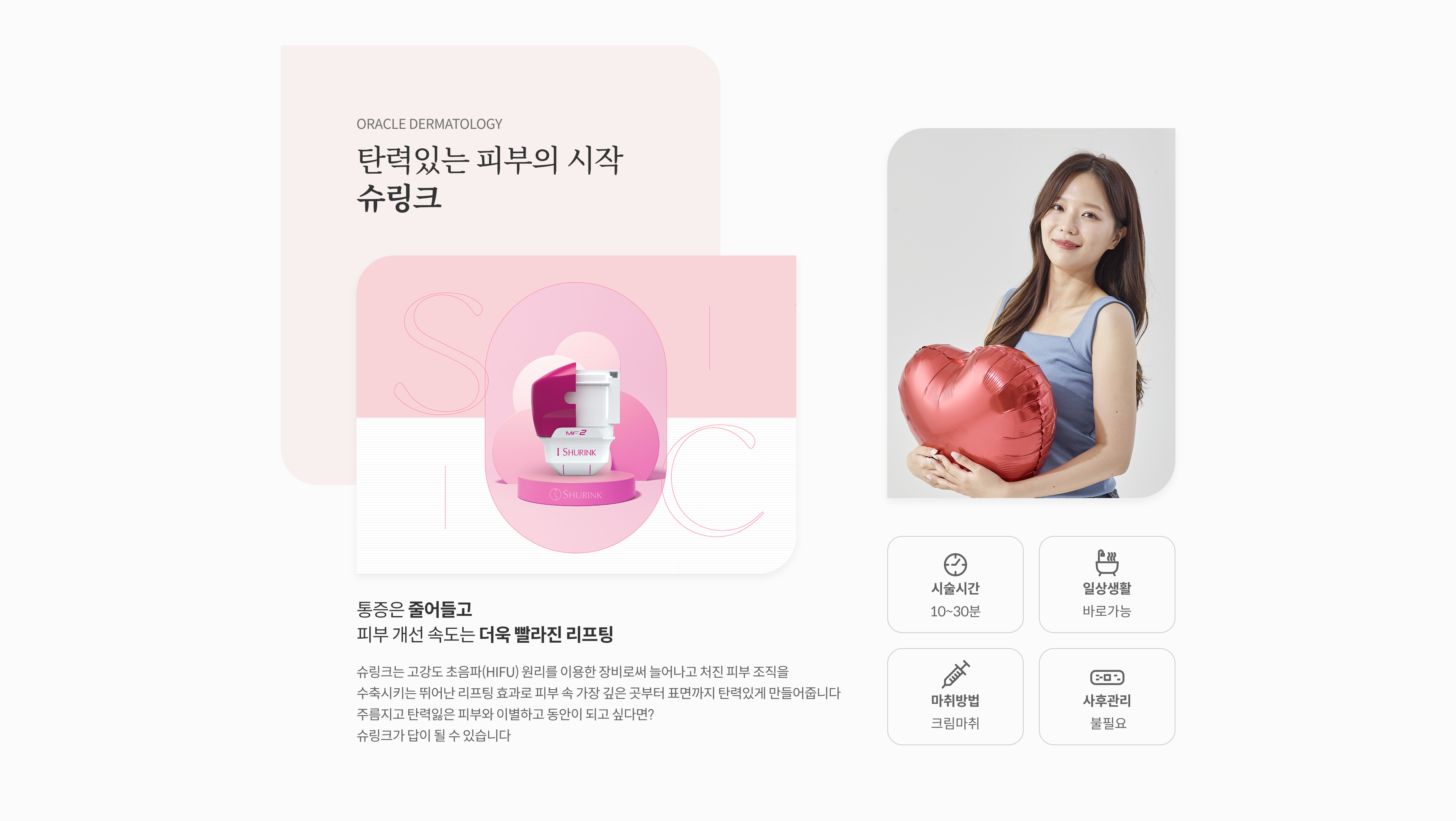 고강도 초음파를 이용해 피부 속 가장 깊은 곳부터 표면까지